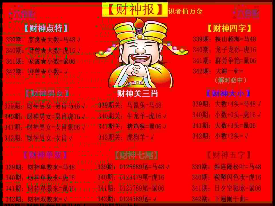 342期:参赛贴【彩王通天报】⑥肖中特🍴开开心心坐等收钱